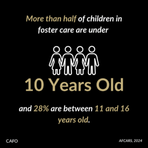 While it’s challenging to know the exact number of youth in foster care, The Adoption and Foster Care Analysis and Reporting System (AFCARS) estimates there are 328,947 children in the child welfare system in their most recent report on fiscal year 2024.