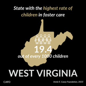 The overall rate of children in foster care in the United States has stayed relatively consistent — 5.1 children per 1,000 in 2021 and 4.6 children per 1,000 in 2023. However, several states have seen significant changes in the rate of children in foster care over the last decade. West Virginia has seen a significant increase (11.5 per 1,000 children in 2011 to 19.4 per 1,000 children in 2023). On the other hand, the District of Columbia has seen a decrease (12.9 per 1,000 children in 2011 to 3.1 per 1,000 children in 2023).